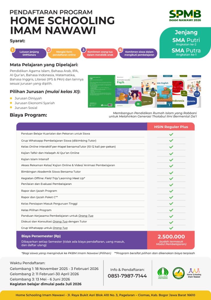 Program Pendampingan Home Schooling Imam Nawawi Semester 1 T.A. 2026/2027